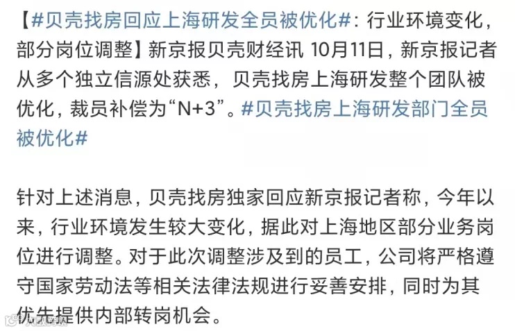 10月,贝壳找房在部分城市开始大量关闭门店,并裁员;