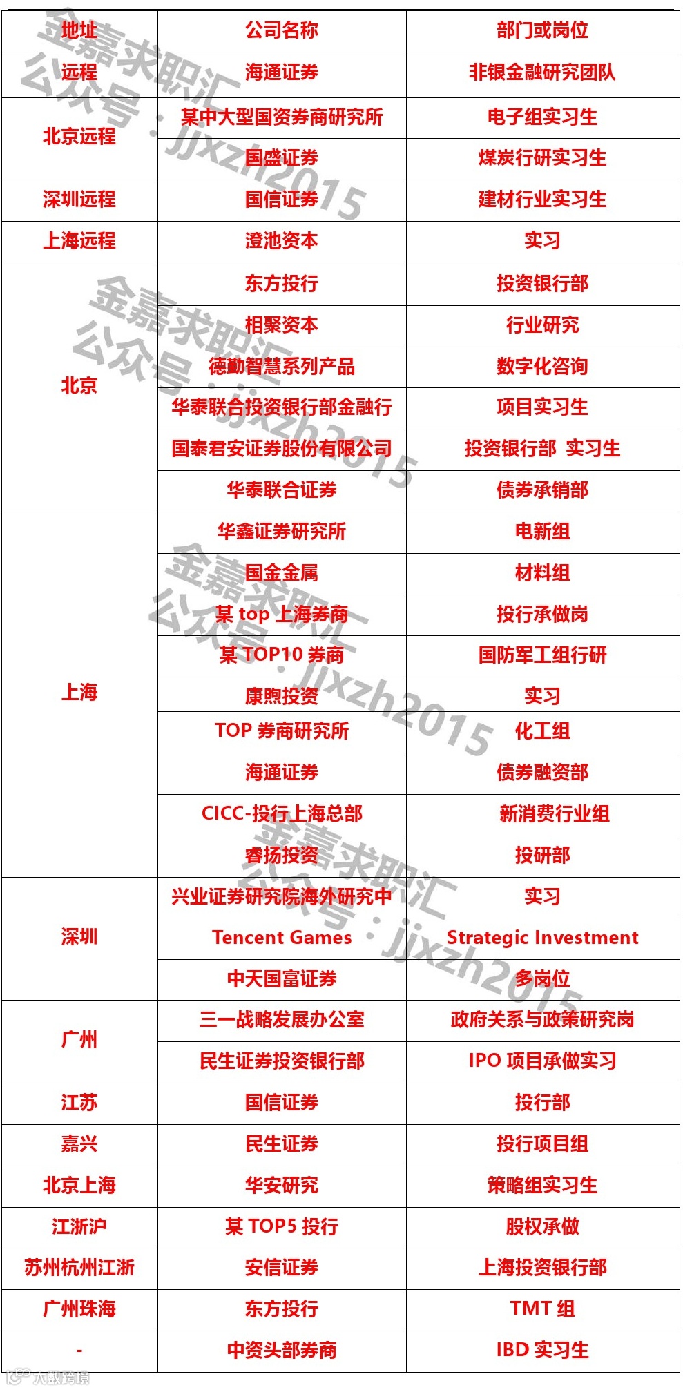 招聘投行实习生,大四、研一、研二时间宽裕者优先。