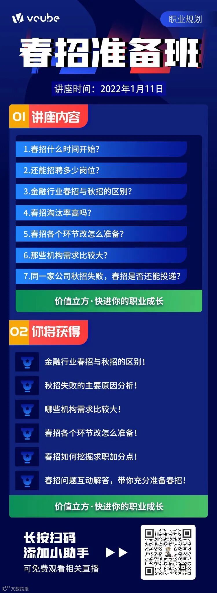 金融小伙伴1月5号会举办春招准备直播讲座,给各位同学分析春招该如何准备以及如何在春招中脱颖而出!