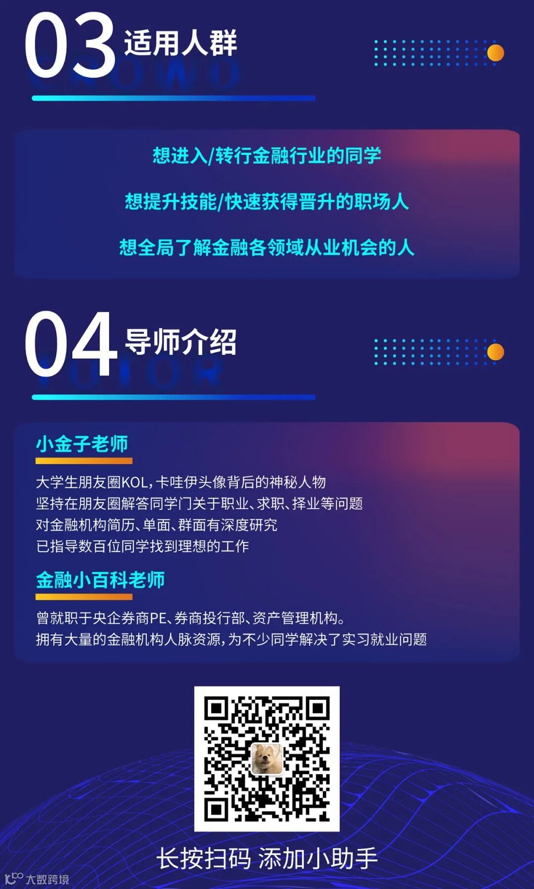 金融小伙伴致力于搭建一个金融垂直领域职业信息分享和交流公益平台,通过持续不断的公众号推文和线上线下活动,提供及时、全面、高效的行业招聘信息和职场提升经验。目前,我们已吸引了超过100万粉丝,在海内外金融学子和在职人士中均享有盛誉。