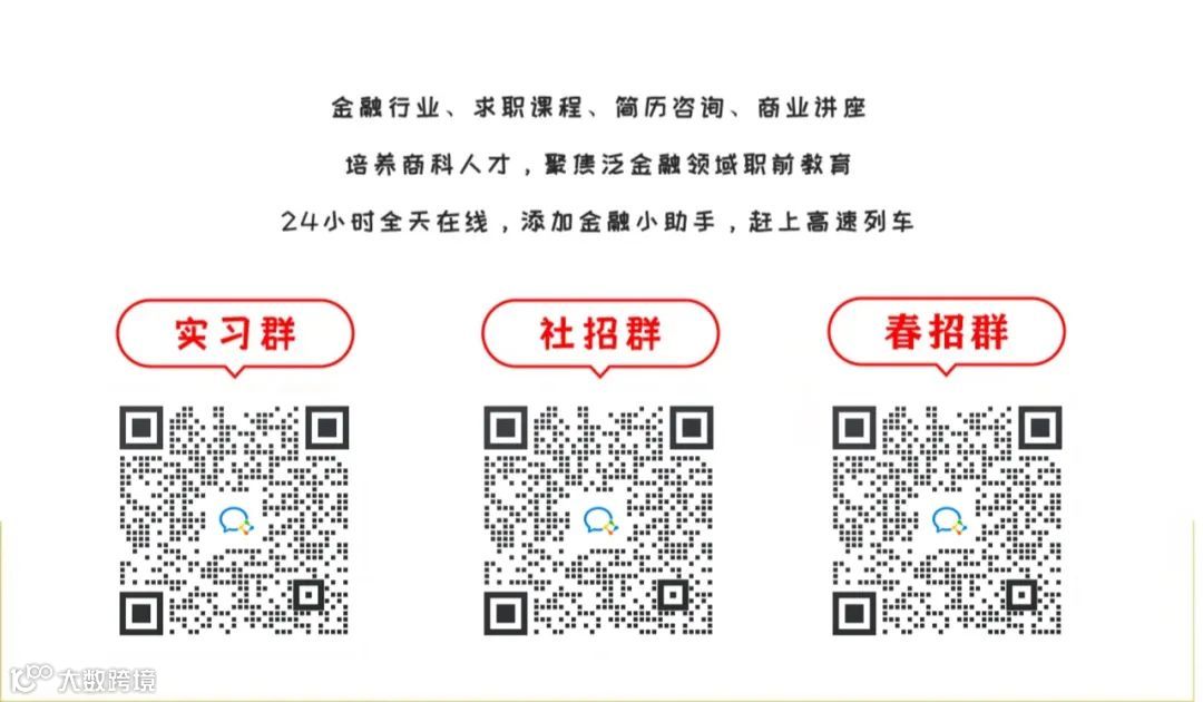 (金融小伙伴,快进你的职业成长。想要找金融实习、求职/跳槽到金融行业的朋友们,可添加VX:zcx517231)