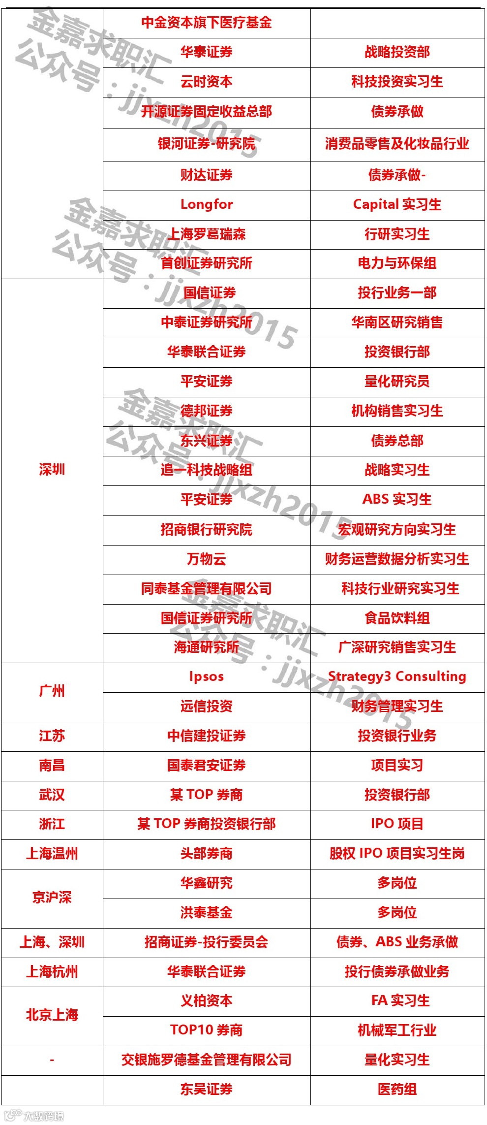 招聘岗位:银行及非银实习生
