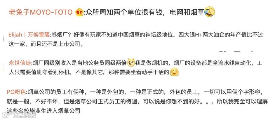 就说卷烟厂吧,听上去应聘的流水线工人,没啥社会地位和影响力。但网友们对这个“神秘组织”夸得实在是撩人,于是我好奇查了一下。