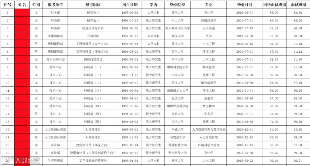 根据《时代周报》的统计,今年河南中烟拟录用人员共149人。其中,在“一线生产操作岗位”中有中国人民大学、武汉大学、郑州大学等985、211名校的学生,硕士研究生也为数不少。