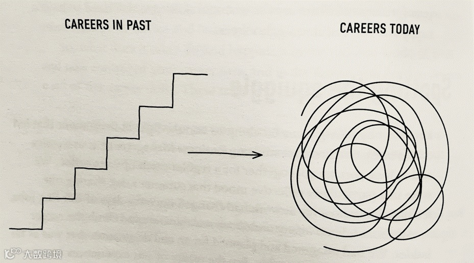 过去一步一台阶上升阶梯式的职业规划现在看来更像一团乱麻。这种“一团乱麻”(Squiggly Career)型的职业轨迹才是未来的主流。