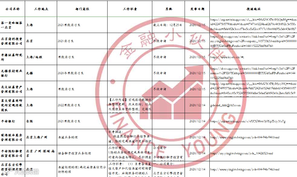 2023实习信息汇总(含远程).xlsx 金融小伙伴career