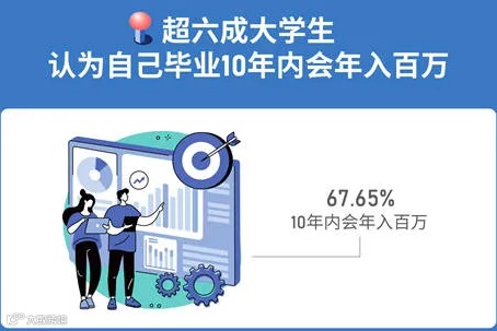 此外,67.65%大学生评估自己毕业10年内会年入百万。
