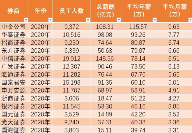 更何况,从前段时间多家家券商披露的2020年报来看。各券商的平均年薪已经达到或者超过百万了。中金以年薪115万的平均薪酬碾压其他券商。