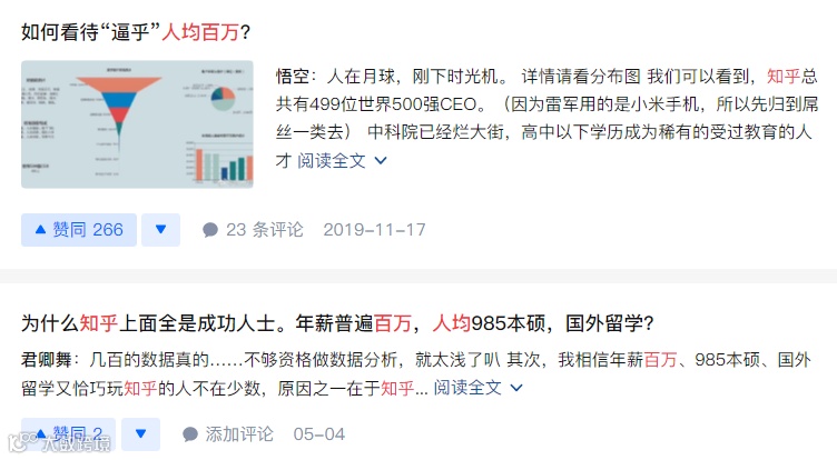 还有知乎里的那些人均985/211!知乎上人均年入百万!,毕业月收入少于一万都不配发言的。