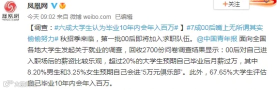 有人表示不太理解为什么那么多人在嘲笑这个数据,认为大学生在进入社会之前,抱着对未来的希望和向往不是很好吗?