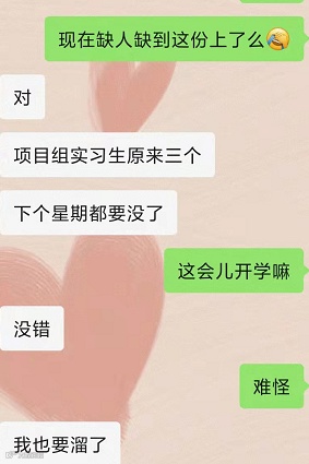 “你有没有学弟学妹来实习的?到岗快,人靠谱就行”