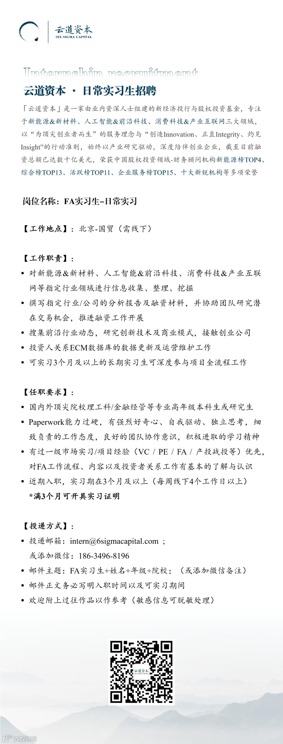 2. 有过往投行/咨询/行研实习经验,具有出色的PPT制作能力;