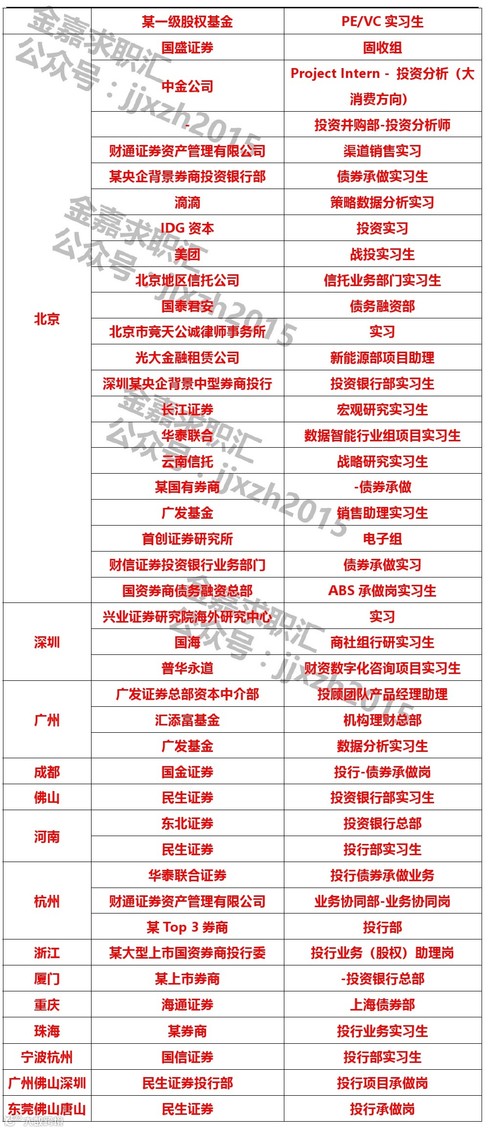 2、有投行、会计师事务所、律师事务所实习经验者优先;