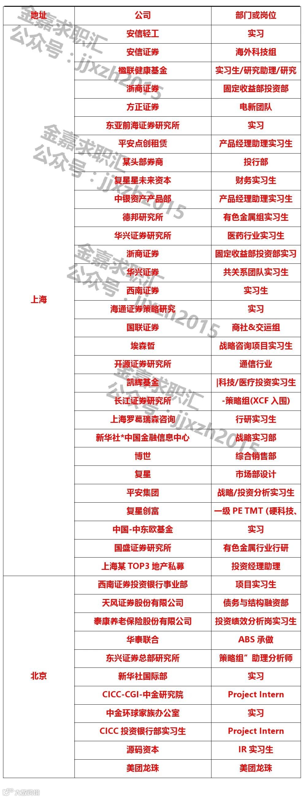 因实习信息发布较多,更新较快,所以只发布一次,如需获取更多实习信息,建议查看公众号最近一周发布的实习汇总