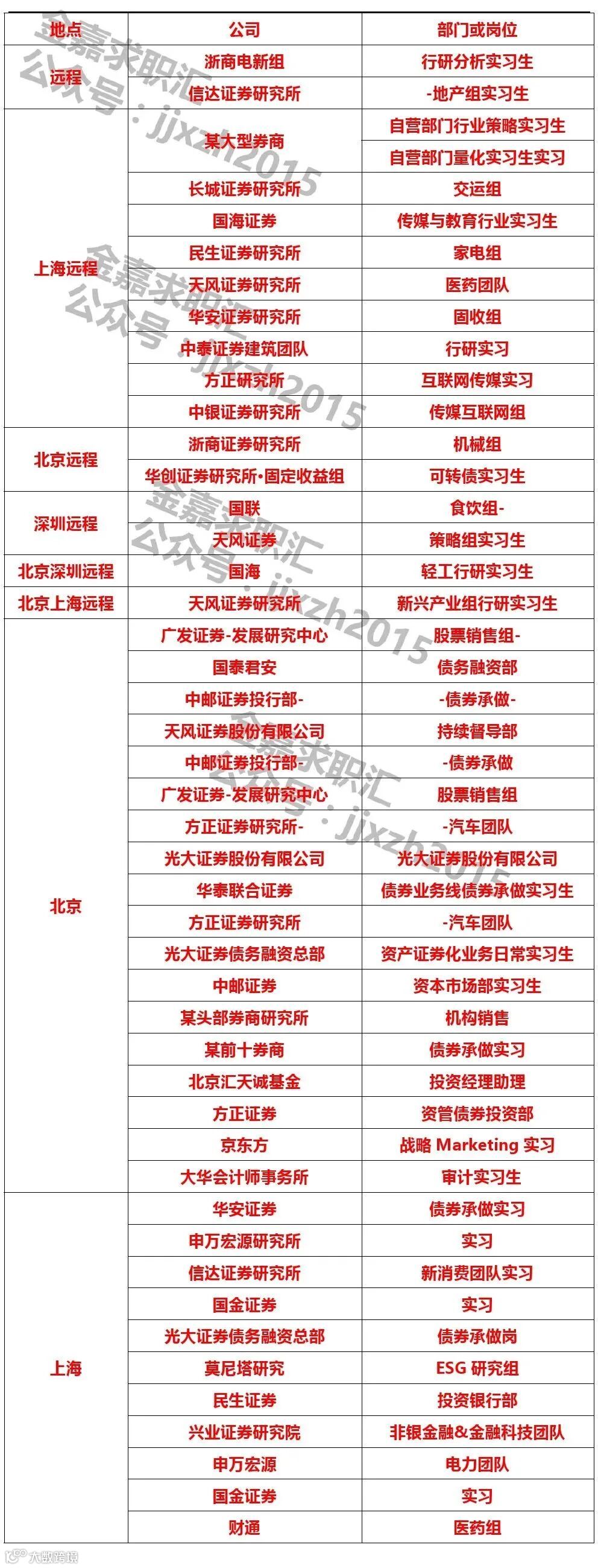 3、有券商、咨询公司等实习经历优先考虑;在某细分领域有兴趣爱好特长优先考虑。