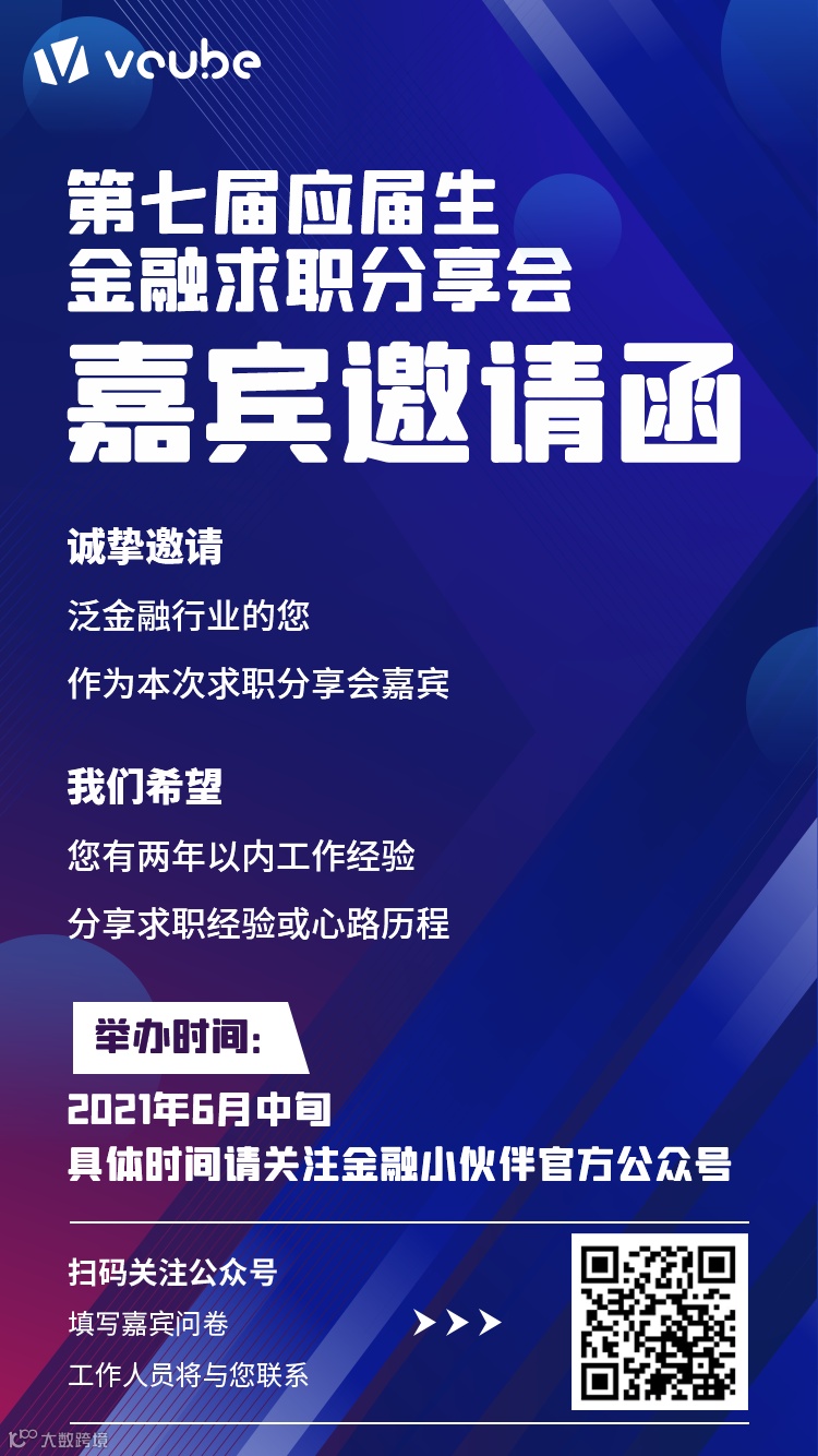 第七届应届生求职分享会诚挚地邀请,更多的金融机构、相关院校组织或平台,参与活动的策划、组织和宣传,为更多的同学带来帮助。