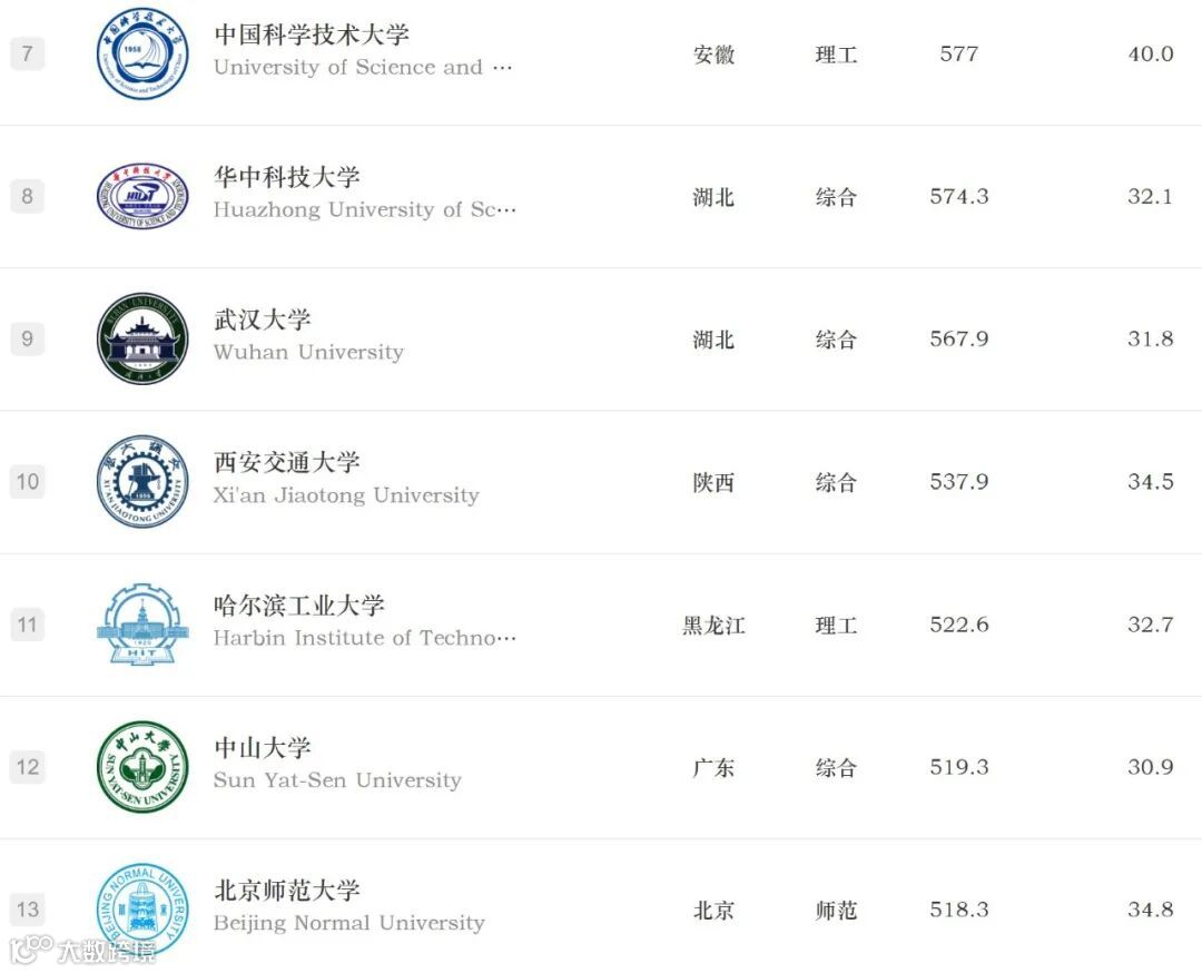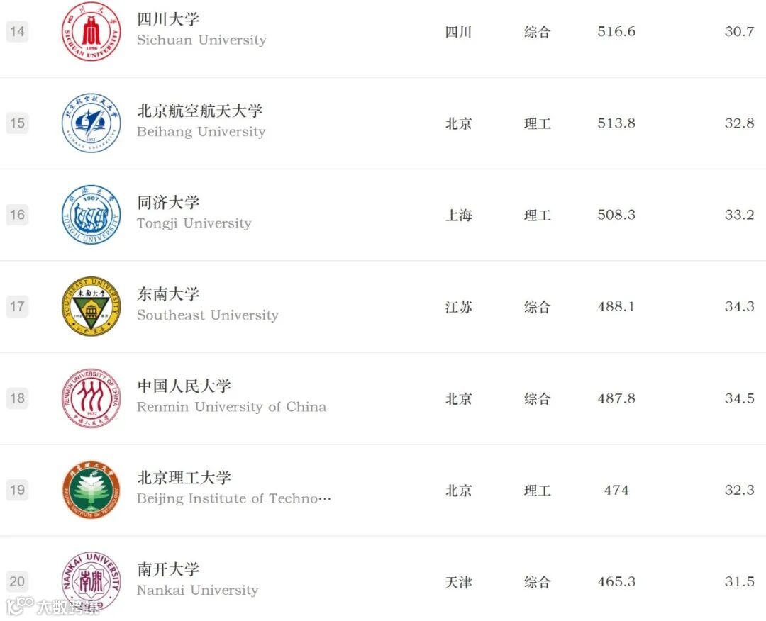 今天朋友圈好多人在刷一个学校排名。