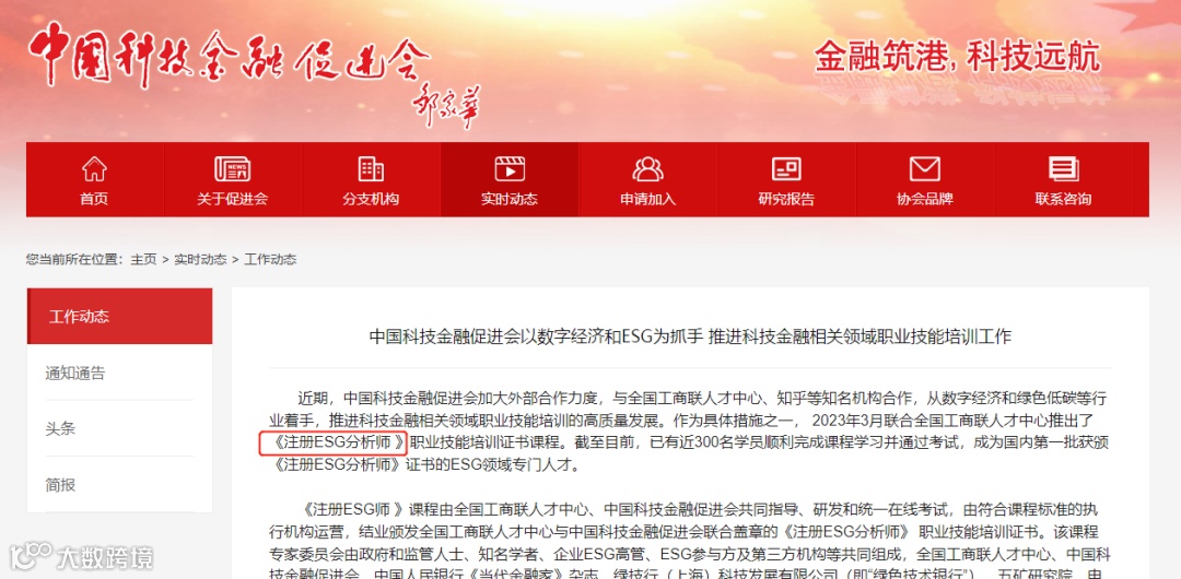 为了积极配合国内对ESG人才的需求,中国工商联人才交流服务中心和中国科技金融促进会于今年正式推出了国内的ESG证书,也是中文版的ESG证书,即注册ESG分析师。