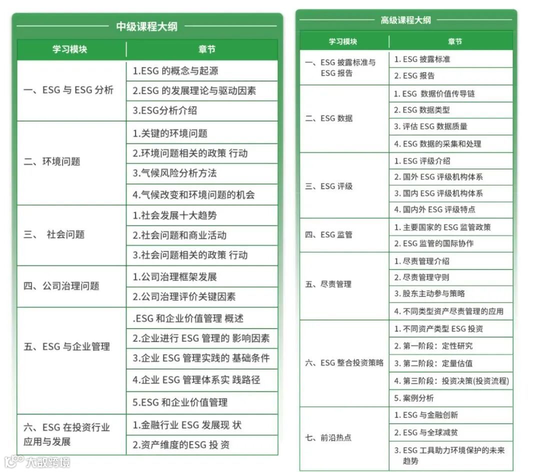 而高级课程侧重于ESG报告编写的步骤、评级机构方法、投资实践等,干货满满,具有实用性。