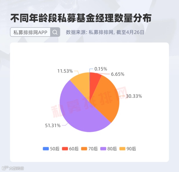 据私募排排网统计的最新数据,截至4月底,已披露个人年龄段信息的80后、90后私募基金经理数量合计2136名,占私募业整体基金经理总数比例超62%,其中90后的基金经理占比约12%。