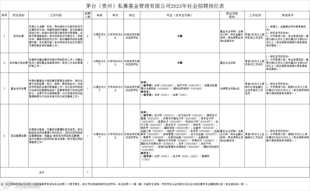 这次茅台私募基金公开招聘要求30岁以下的投资经理。