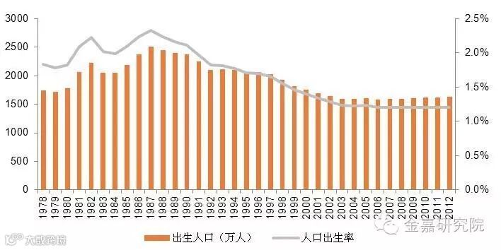 图表1.人口出生率自1987年以来趋势向下