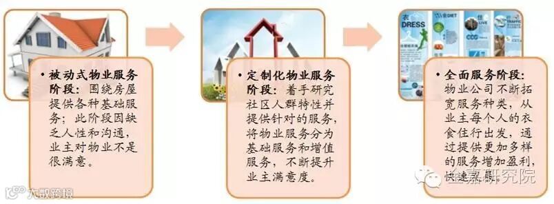 目前传统物业服务企业正在从几个方向转变:(1)在传统物业服务领域,利用智能化硬件以及互联网化的软件系统,优化保洁、保安等基础服务体系,提升物业管控效率;(2)在延伸物业服务领域,基于诸如APP、微信公众号等移动终端的渗透普及和LBS技术服务的闭环,传统物业在常规服务基础上拓展专项服务、特约服务、代办服务及电商经营服务等;(3)跨地区拓展经营,部分物业服务企业在智能化改造和社区O2O方面已取得了令人瞩目的成绩,业主生活品质和居住幸福度得到了快速提高。