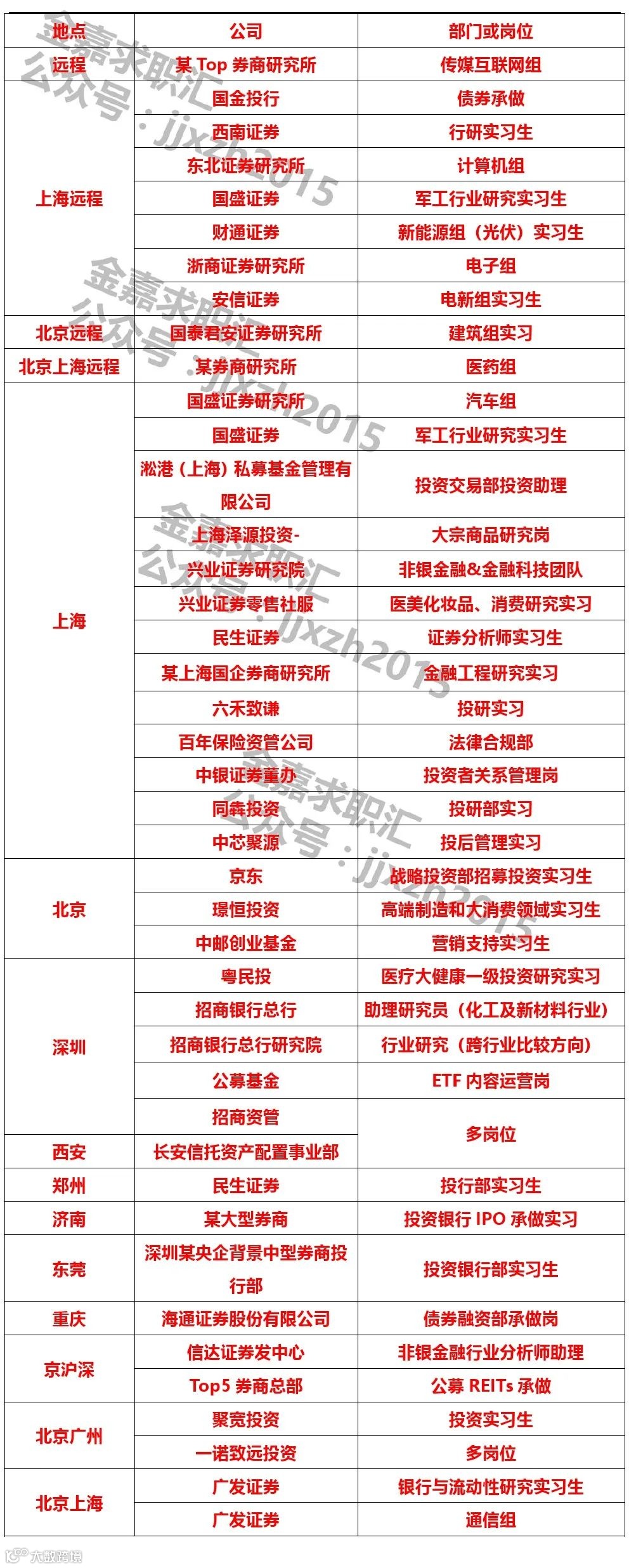 如需发布招聘信息直接发送至金融小伙伴(jrxhb2014)公众号后台,也可以添加工作人微信号(jzhecthu)联系发布,请备注“姓名+单位+发布招聘”!