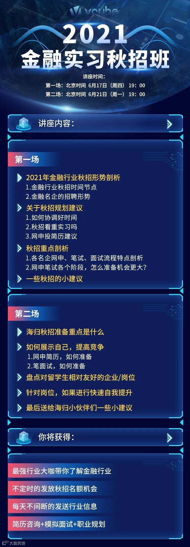 为了让大家更好的准备秋招,更高胜率的斩获秋招offer,金融小伙伴特别在6月17日和6月21日为大家准备了全方位解析秋招的讲座,免费福利,记得来领!