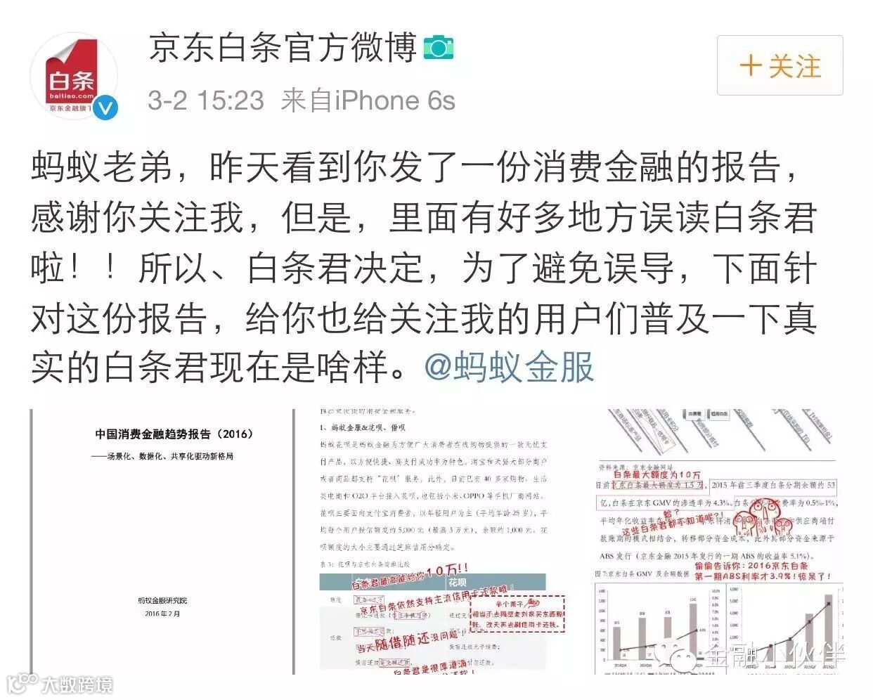 而3月2日,京东白条官方微博隔空喊话,发布消息指出了该报告的误读。