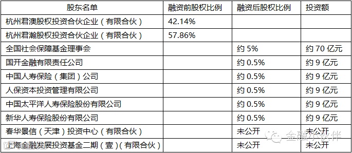 2015年7月3日,蚂蚁金服宣布完成A轮融资,引入了以全国社保基金为主的国内人民币优质投资者。根据蚂蚁金服工商登记的更新数据,其A轮融资一共引入了8家机构。