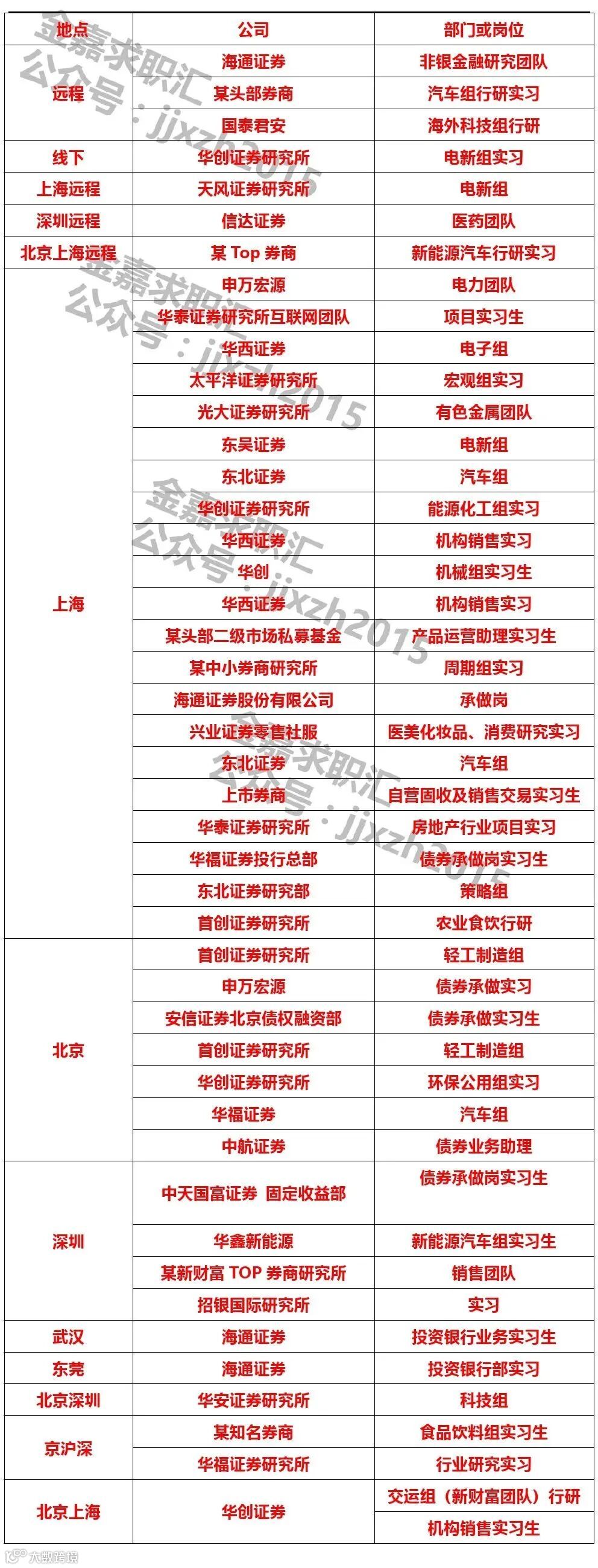 某Top券商新能源汽车行研实习生招聘
