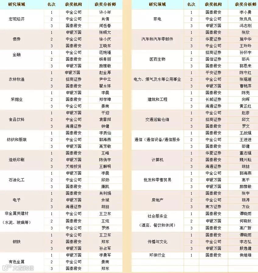 2003年新财富最佳分析师名单一览