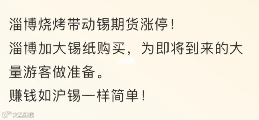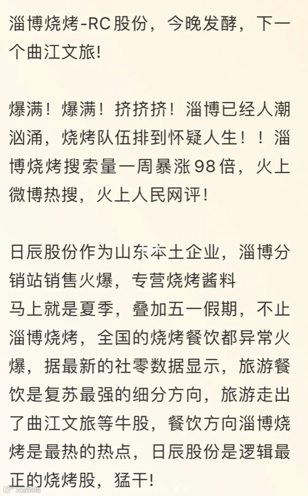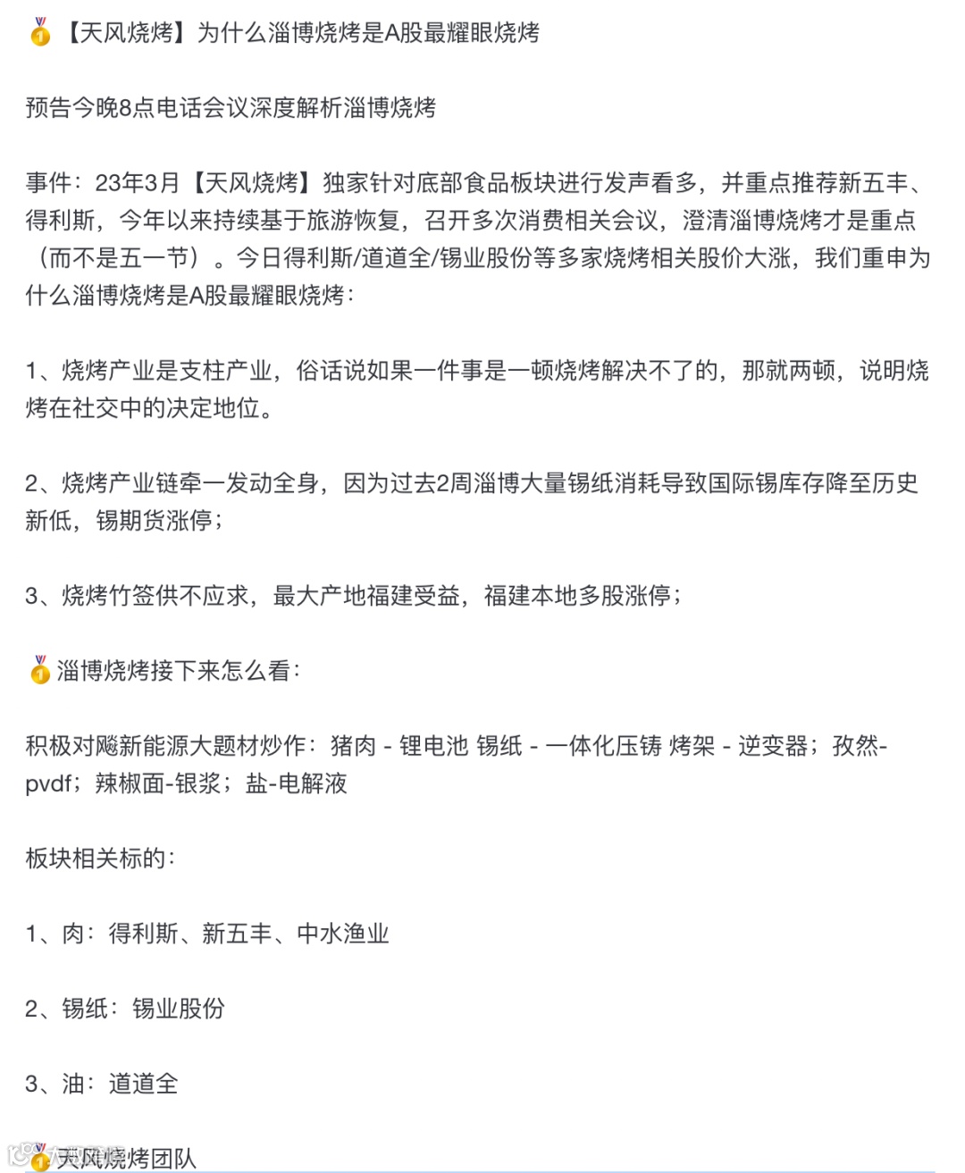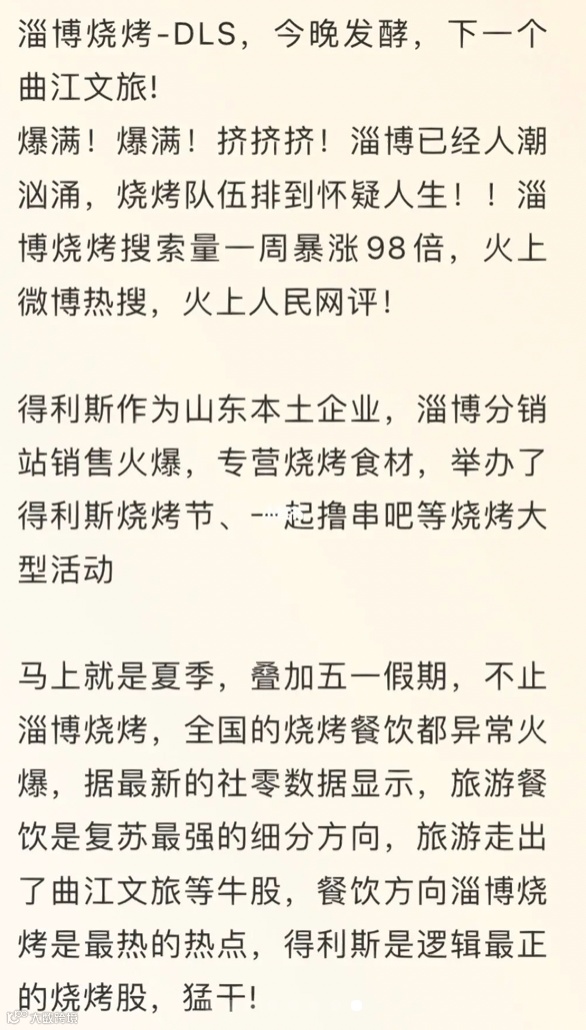 不过,从另一方面说,当淄博烧烤风刮到了金融圈,说明淄博烧烤真的是爆火了。