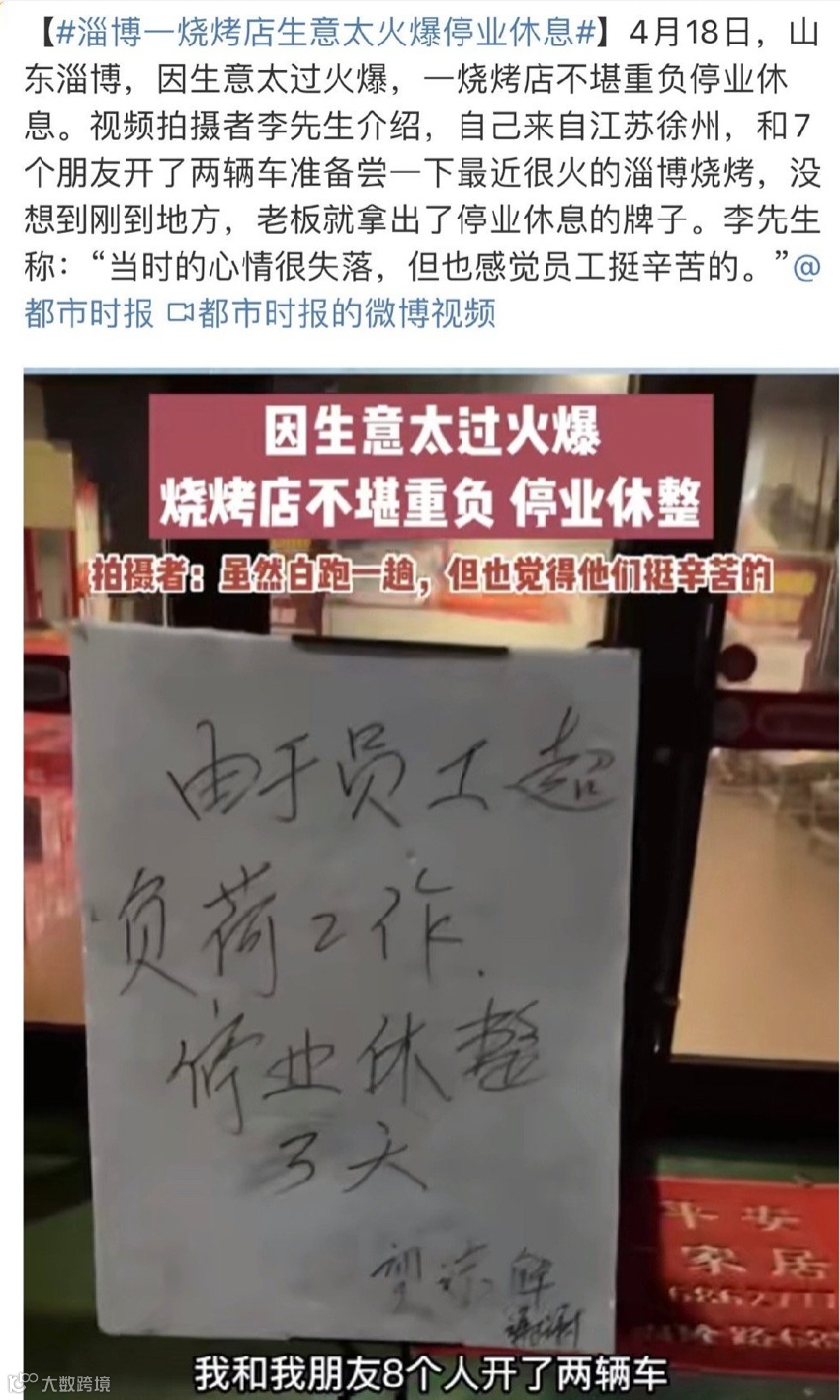 因为网上有人说已经开始奔赴淄博调研烧烤行业了。