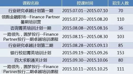 招生数量:投行、行研、资管、银行、四大5个方向,每个方向至多招收5名学员
