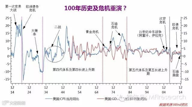 1)长波周期(康波周期)的定义是全球资本积累系统(体系)的生命周期。长波周期具有隔代遗传特性。本轮长波周期大衰退(第五轮),在机制上与第四轮长波衰退(1968年-1982年,大滞胀)截然不同,而类似于第三轮(1919年-1935年)。我们在5月的MFI大类资产论坛北京场曾专题论述之。