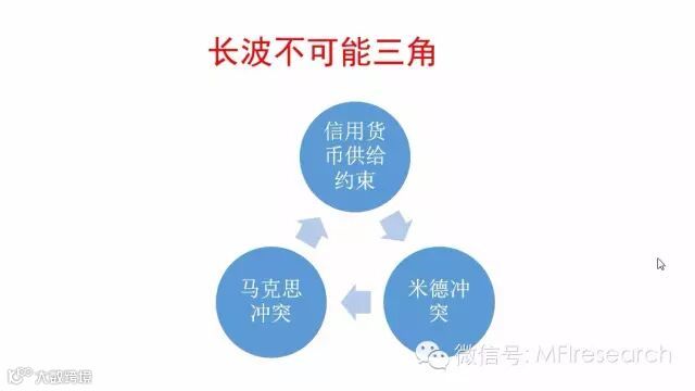 因此,开放经济体系根深蒂固的矛盾就是,货币供给约束与米德冲突、马克思冲突三者不可能同时得到解决。我们命名为“长波不可能三角”或“全球化不可能三角”。