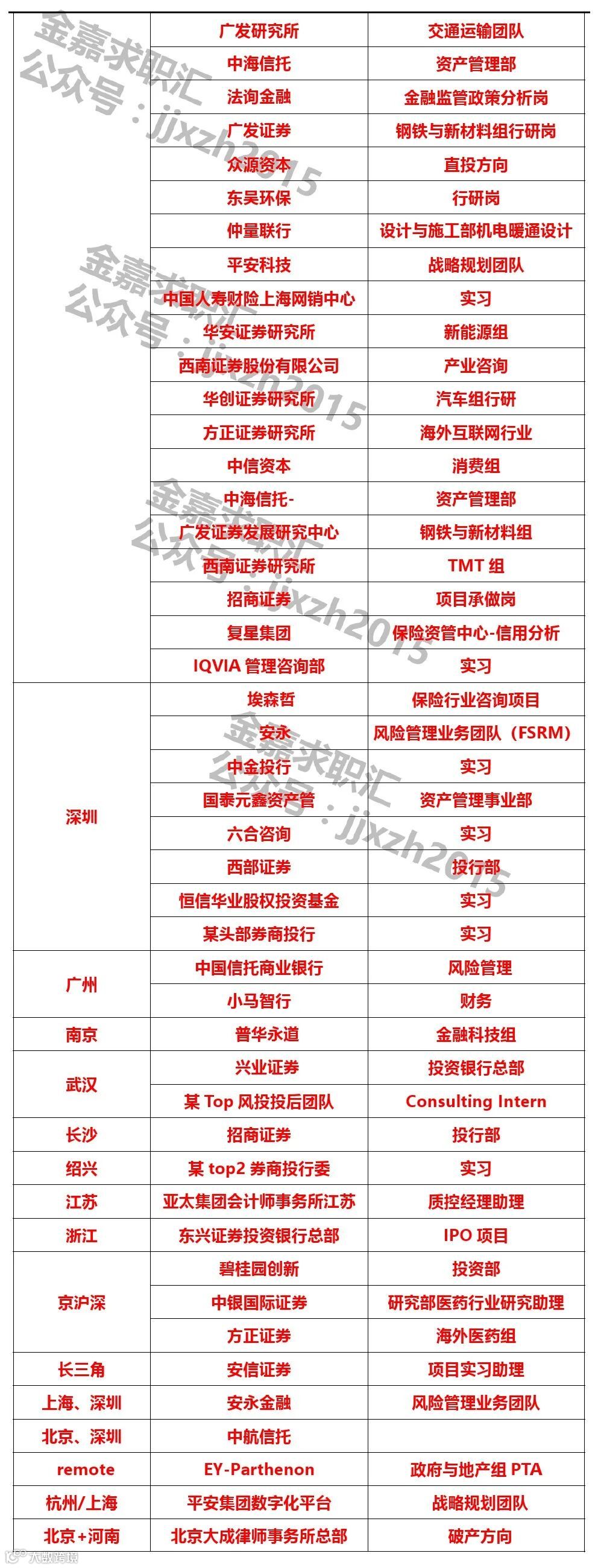 2、具有券商投行、资管、信托、审计、法律等实习经验者优先;
