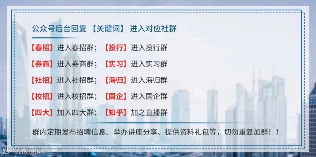 如需发布招聘信息直接发送至金融小伙伴(jrxhb2014)后台哦,也可以添加工作人员微信号(jzhecthu)联系发布,请备注“姓名+单位+发布招聘”