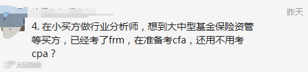 但真要指望CFA就一定有很大的帮助,还是比较难的,毕竟最踏实的还是行业研究相关能力。