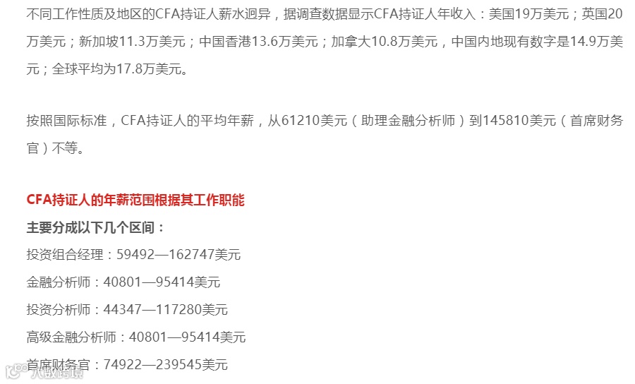 事实上,对于证券投资行业来说,CFA只能起到锦上添花的作用。求职时,你的学校和实习经历将会成为更重要的门槛,用人单位通常不会将CFA作为录取时的重要考虑因素。