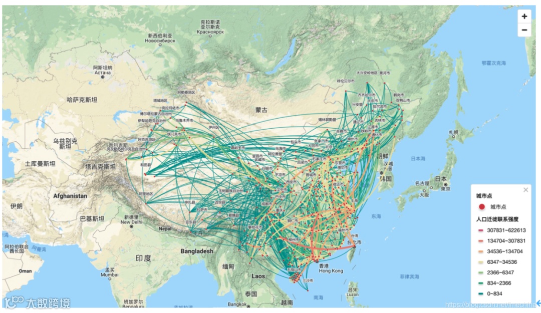 如果你换个城市生活,安顿好之后的第一件事是什么?很多人都会第一时间改外卖和快递的收货地址。所以,京东曾经做过一个数据,把它后台接收到的地址变动汇总在一起,形成一幅大数据人口迁徙图。