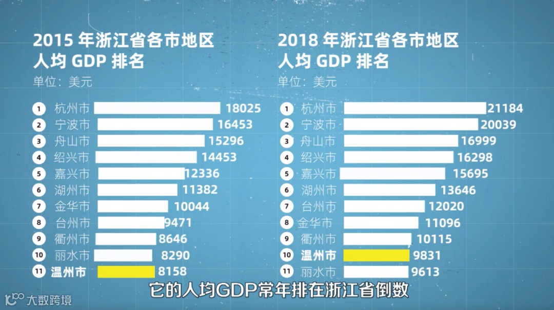 比如温州,虽然全国各个角落都流传着温州人发家致富、重金求子,哦不是,是重金买楼的传说。但随着人口流出的还有产业转型的机会,它的人均GDP常年排在浙江省倒数。