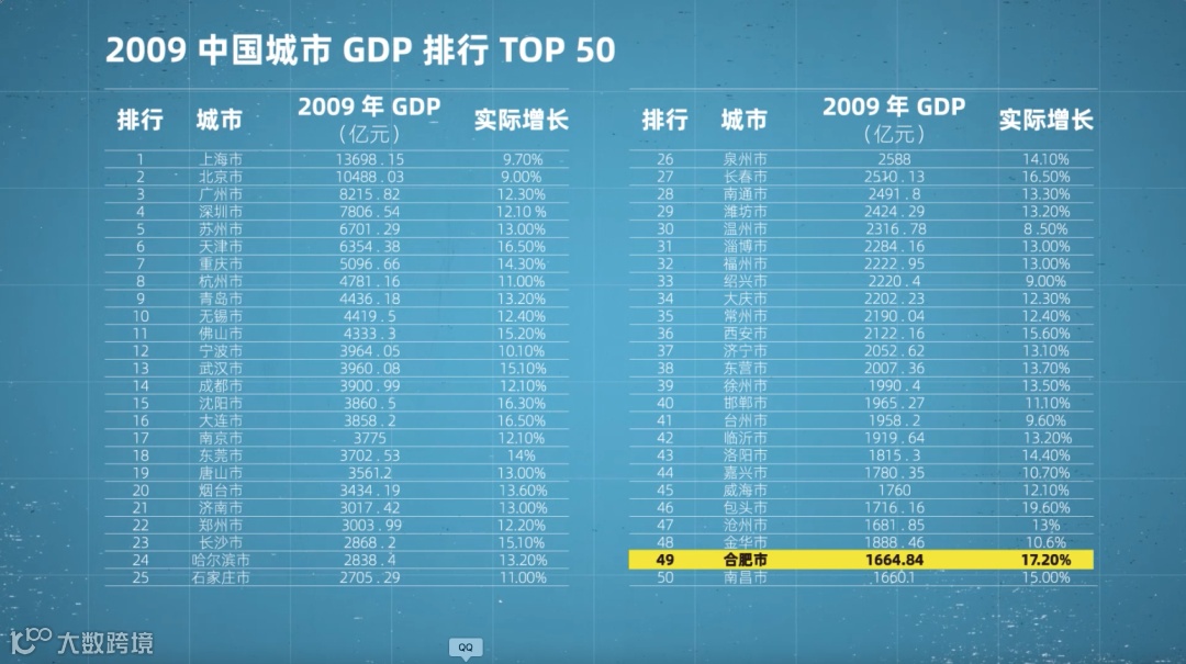 拿投资机构的钱不如拿合肥政府的钱。人家还能把拿地、贷款等配套,顺便就给你做好了。靠着风险投资带来的高回报,2009年到2019年,合肥的GDP排名从49名提升到21名,成功挤进新一线城市。