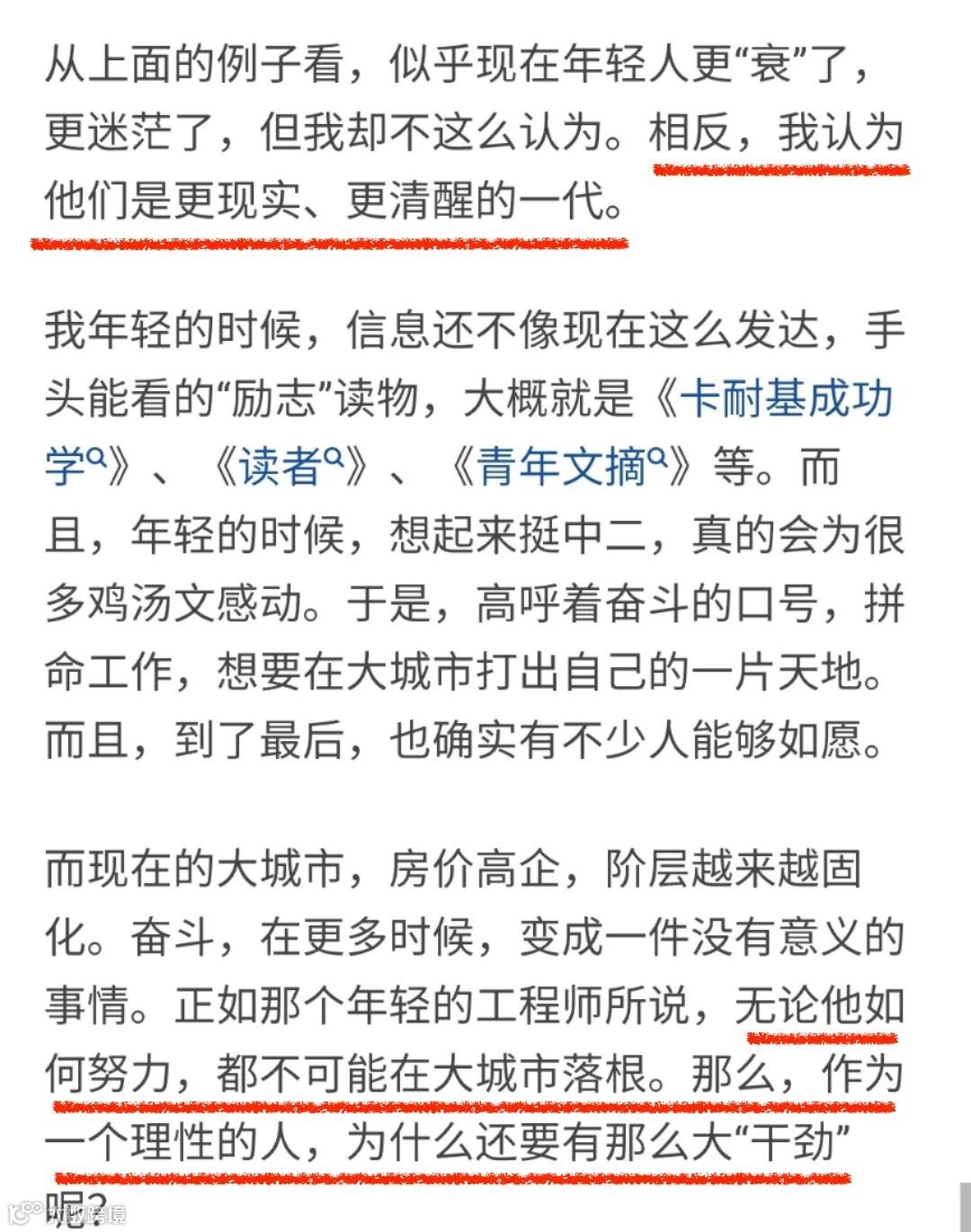 因为他们付出过同样的努力,却再也无法收获上一代人的红利和财富。