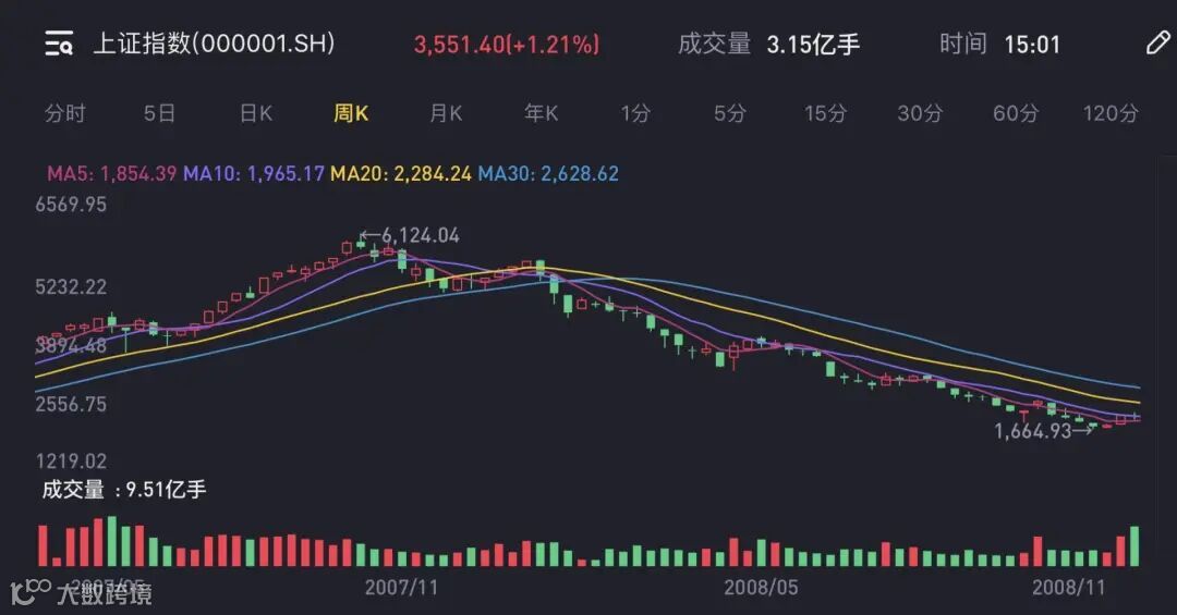 大江洪流资产管理有限公司董事长姜味军从业20多年,他对深燃说,2008年他在一家证券公司任研究所所长,市场暴涨带来投资人财富大幅增值,几乎每天中午都有投资赚钱的人请他吃饭,“主要是分享喜悦,都挣了钱了,赶快告诉你”。那一轮牛市中,A股上证指数从998点涨到6124点,两年多时间涨了6倍。