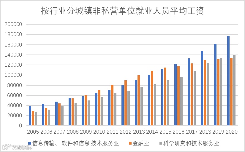 凤凰网原创 自2005年以来,国家统计局的“非私营单位分行业就业人员年平均工资”统计表中,金融业一直名列三甲。