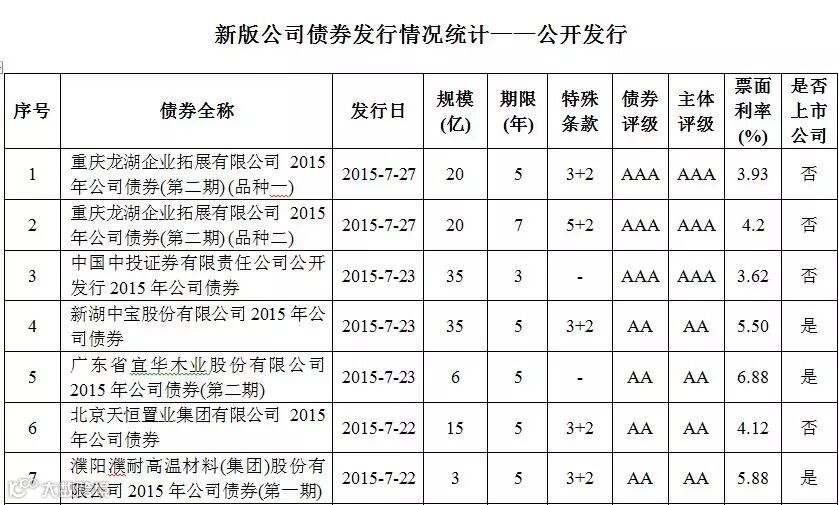 【干货统计】新版公司债券发行情况