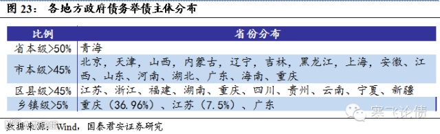 从举债政府层级来看,省和市级占比较高的地方债务由于信用风险低,在债务置换时可能相对顺利,而区县级和乡镇政府占比较高的省市如重庆等,债权人可能以当地中小银行为主,定向置换对银行而言,会面临更高的生息资产利息损失,压缩银行利润,因此可能需要更多其他配套优惠政策(如地方国库存款等),以弥补银行总体损失。